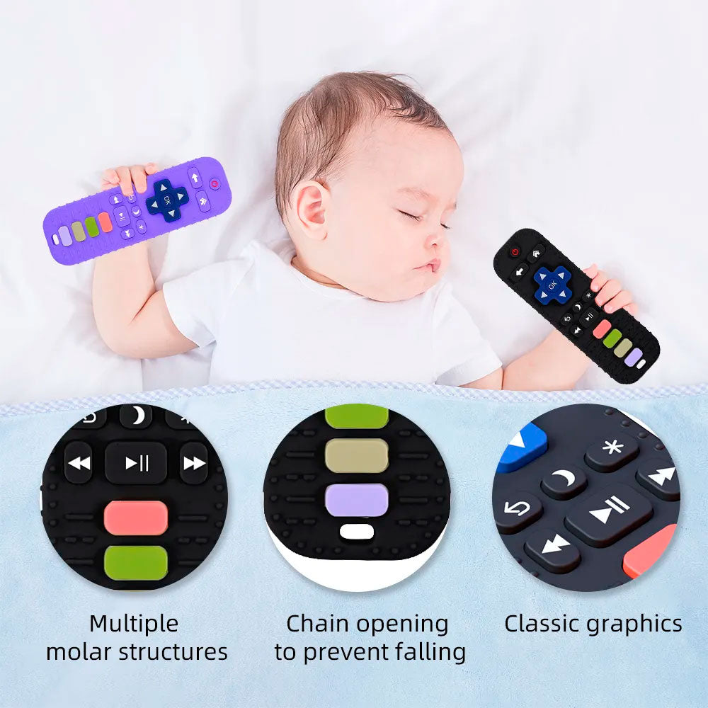 ¡Alivio y diversión en sus manitas! Control mordedor para bebé, suave, seguro y con diseño divertido tipo control remoto. Ideal para calmar las encías y estimular los sentidos. ¡El juguete perfecto para las primeras etapas!