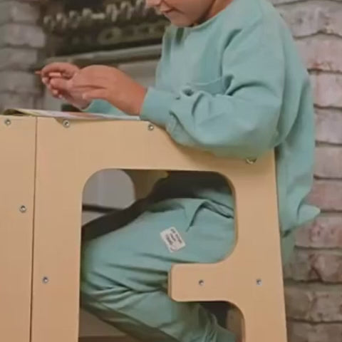 La torre de aprendizaje está diseñada para que los niños participen activamente en las tareas del hogar de forma segura y divertida. Gracias a su estructura estable y su altura ideal, permite que los más pequeños lleguen a superficies antes inaccesibles, fomentando su independencia mientras exploran el mundo a su ritmo.