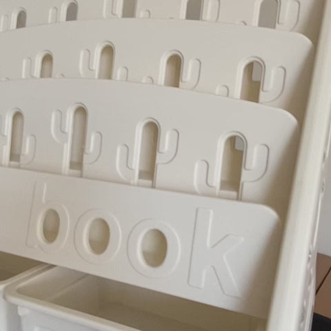 Librero infantil colorido y funcional, diseñado a la altura de los niños para que puedan guardar y elegir sus libros fácilmente. Ideal para fomentar la autonomía y el amor por la lectura.