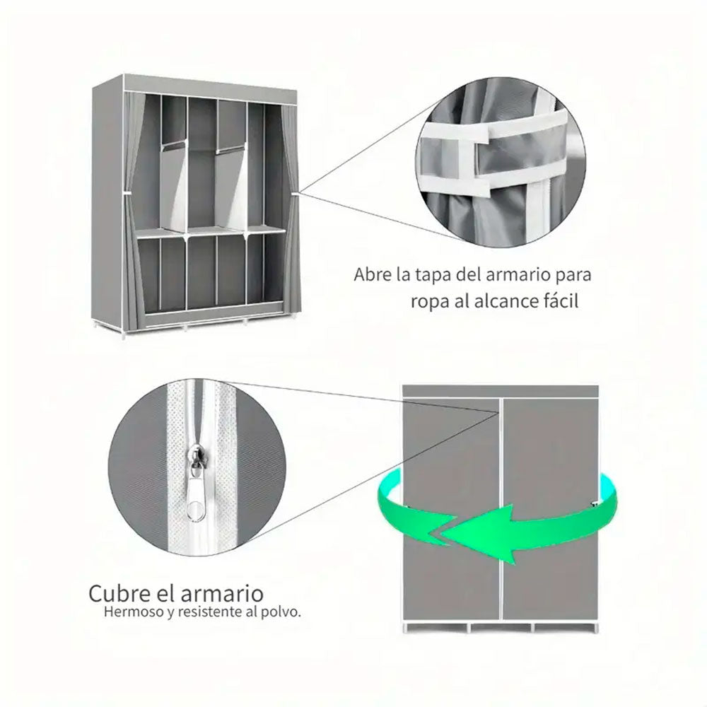 Mantén tu ropa ordenada con su estructura firme, forro de tela duradera y puertas con cremallera. Fácil de armar, ligero y plegable para ahorrar espacio. Ideal para dormitorios, cuartos pequeños o mudanzas.