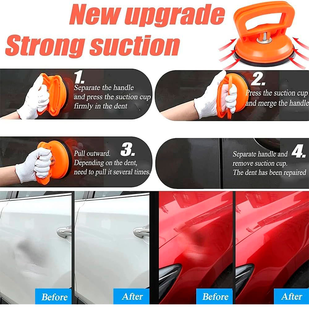 Elimina abolladuras fácilmente con esta ventosa reparadora. Práctica y efectiva, ideal para reparar golpes sin dañar la pintura.